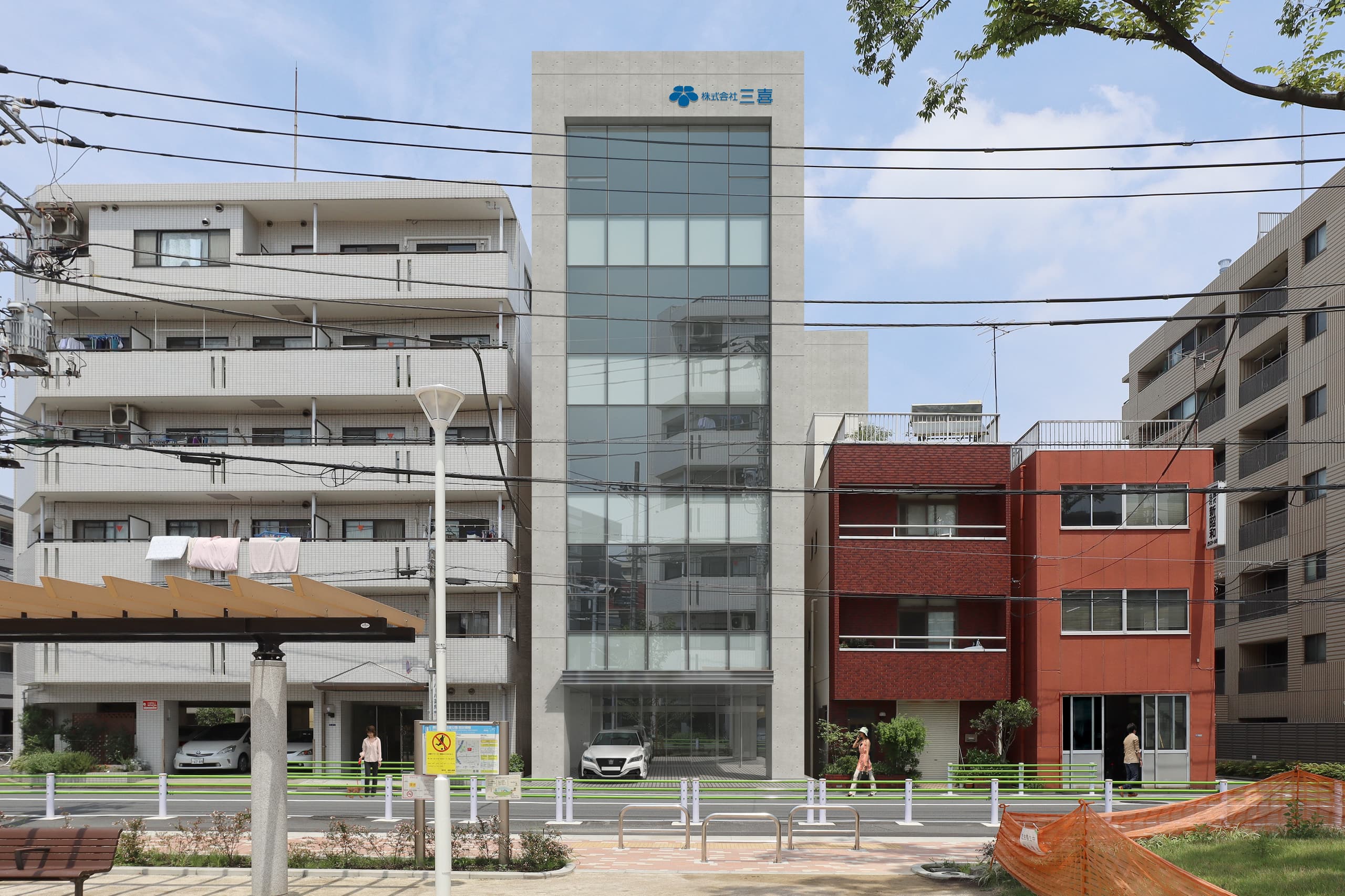 東京都内では、建築パースの写真合成用に撮影する現場の多くは、道路幅が狭いなど広く開けた場所が少なく車や人通りが激しいなどで撮影するには厳しい状況が多く大変苦労しておりますが、弊社では出来る限りご要望にお応え出来るよう対応いたしております。